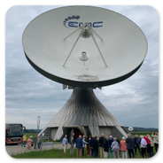 Nach einer einstündigen Busfahrt erreichten wir unser Ziel, die Erdfunkstelle Raisting wenige Kilometer von Weilheim entfernt am Südende des Ammersees gelegen. In der Römerzeit kreuzten sich hier die Verbindungsstraße von Italien nach Augsburg sowie die Straße von Kempten nach Salzburg. Dort wurden wir von unserem Guide Dipl.-Ing. Martin, der selbst im aktiven Dienst an der Stelle tätig war, empfangen. In anschaulichen Worten brachte er uns Nichttechnikern, angefangen von der Telefonie bis hin zur Satellitenkommunikation, die Erdfunkstation näher.